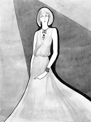 身着金黄色绣着凤凰的云烟衫,逶迤拖地黄色古纹双蝶云形千水裙,手挽碧霞罗牡丹薄雾纱。